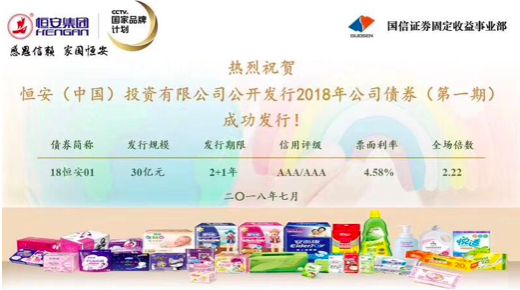 7月27日,摩斯国际(中国)投资有限公司公开发行2018年第一期小公募公司债券,本期发行金额30亿元,期限为2+1年。
